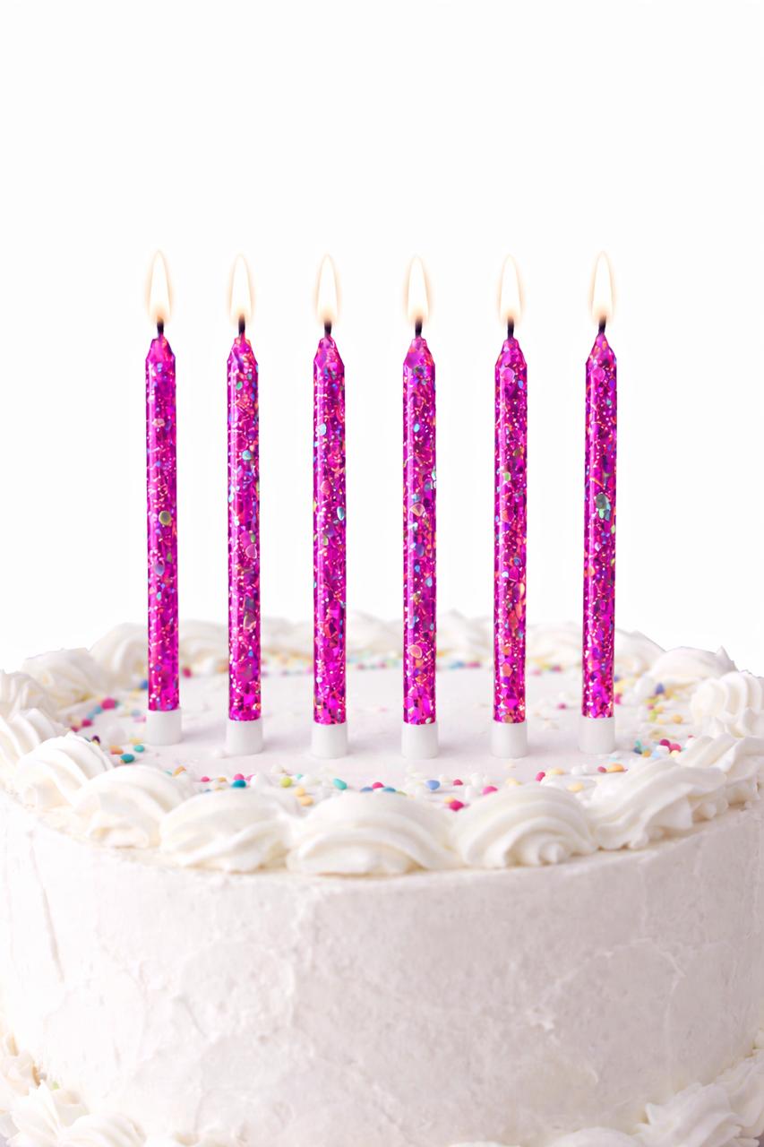6 Unidades Velas De Cumpleaños Largas Fucsia Con Glitter