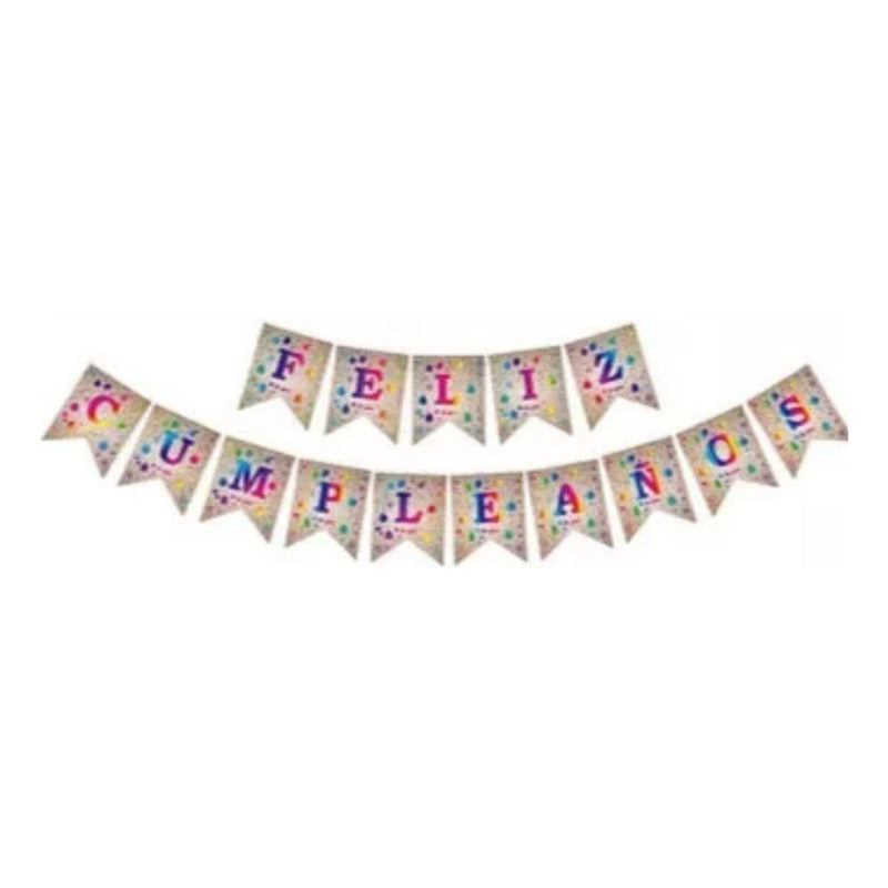 Guirnalda Feliz Cumpleaños 5 Mts Plateada Decoración Fiestas