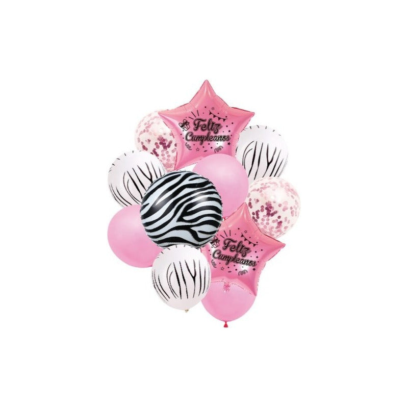 Set Globos De Cebra Rosado 11 Piezas Decoracion Cumpleaños