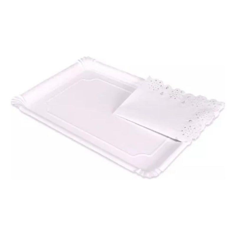 10 Bandejas De Cartón Con Blonda Rectangular N°14 42 Cm