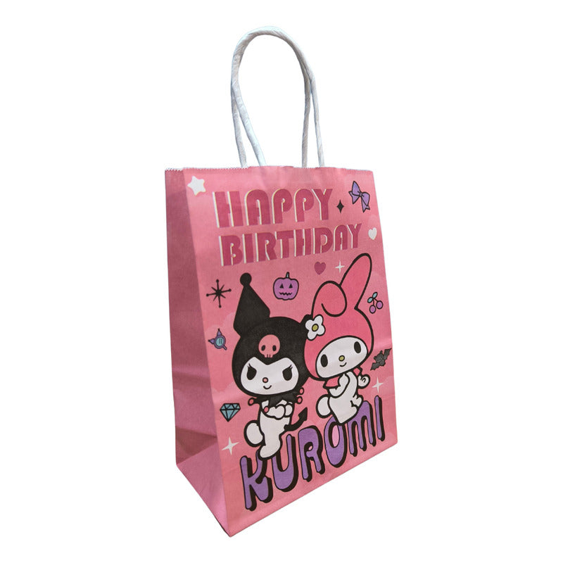 12 Bolsas Papel Cumpleaños Kuromi 16x21 Cm Morado Kuromi