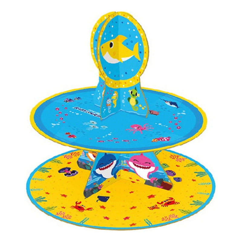 Porta Cupcakes Cotillón Baby Shark Cumpleaños Celeste