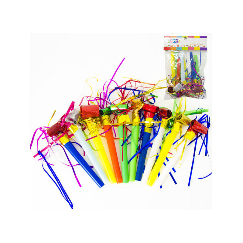 10 Silbatos De Fiestas Pito Serpiente Fleco