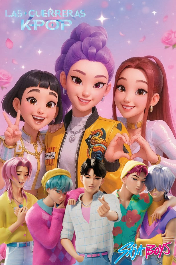 Pendon De Cumpleaños Pvc Guerreras K-pop Huntrix Decoración 54x54 cm