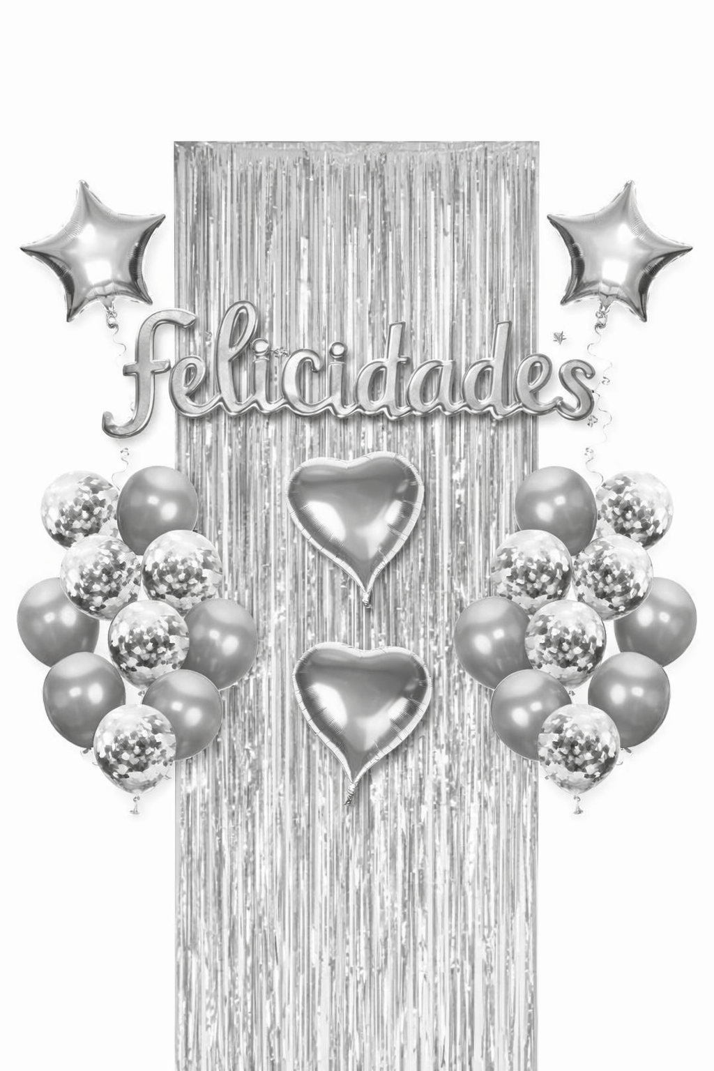 Set De Globos Plateados Felicidades Decoración Fiesta